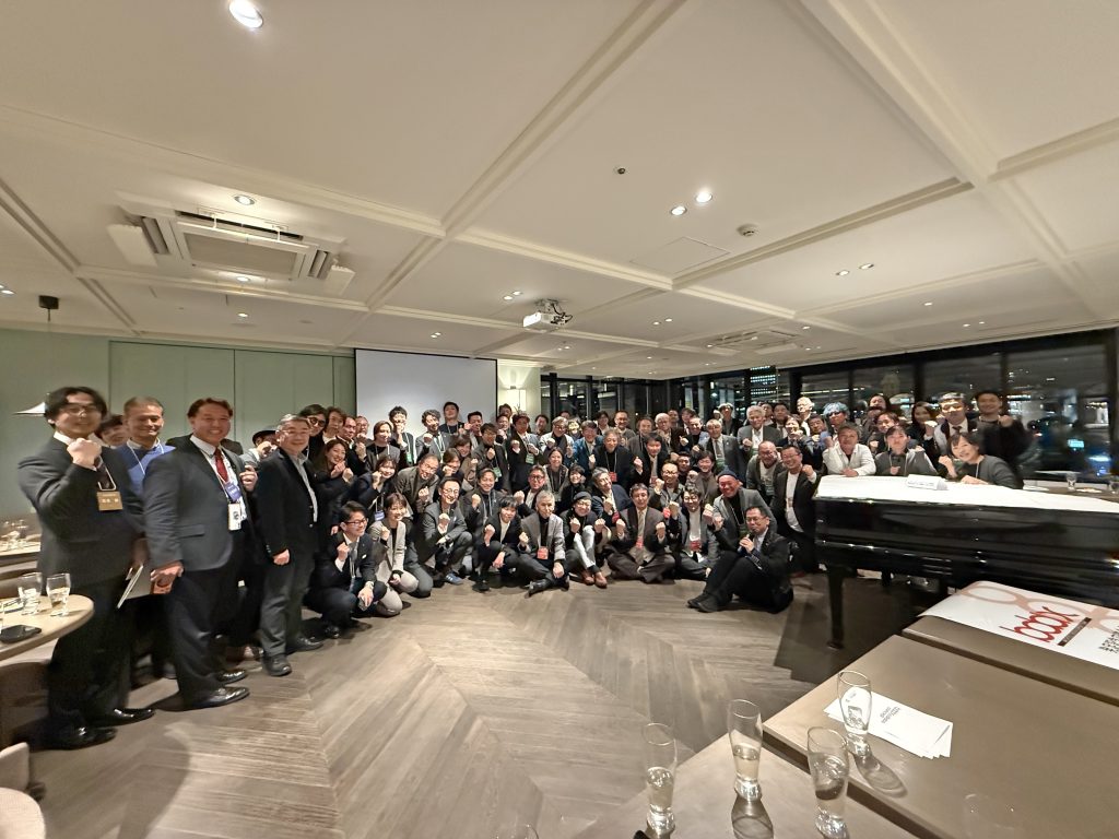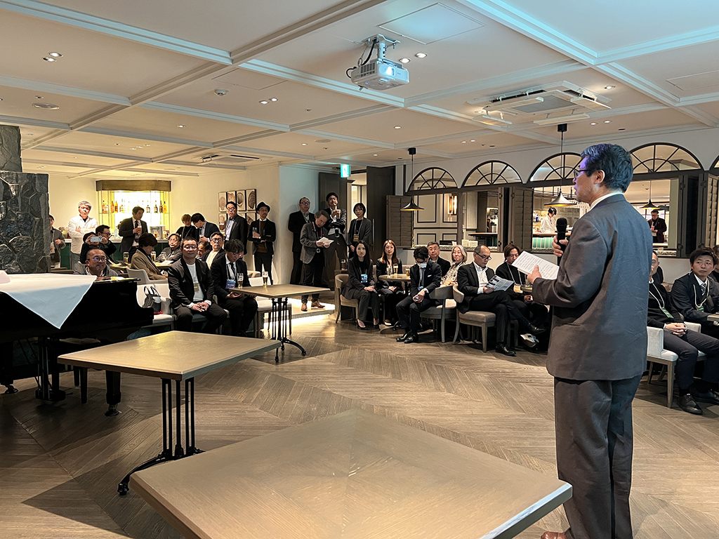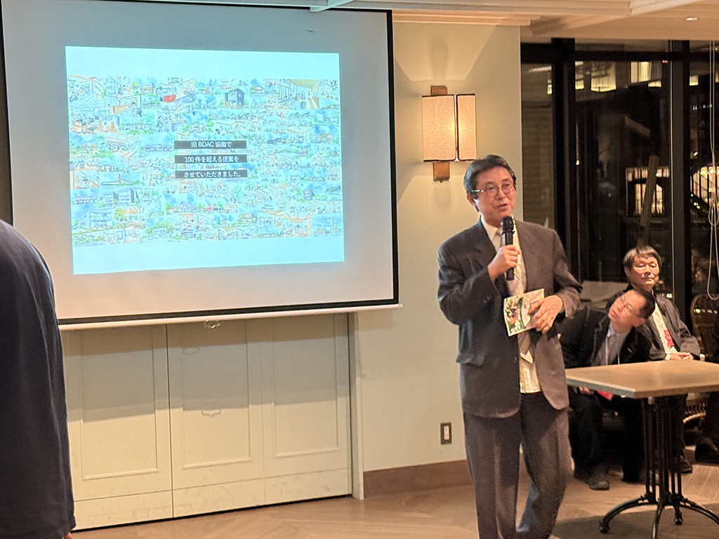 石原良治様(旧BDAC所長)に乾杯の音頭を取っていただきました。司会はメンバーの坪井さん。