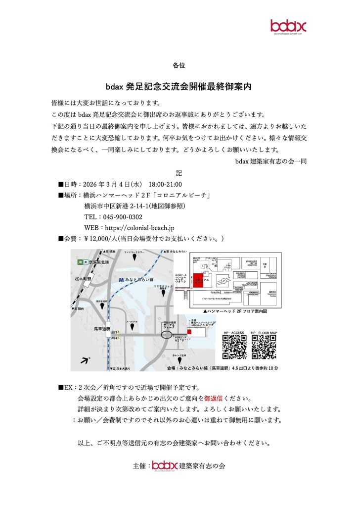 この度は bdax 発足記念交流会に御出席のお返事誠にありがとうございます。